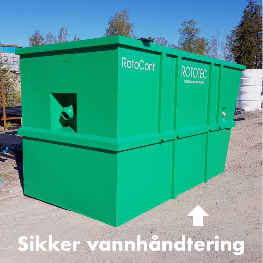 Bærekraft er kjernen i vårt arbeid. Alle i Rototec arbeider aktivt for bærekraft ved å tilby karbonnøytral energi. Som bekreftes av våre verdier, så streber vi etter å være pionerer innenfor geoenergi og kommer stadig med innovative og nytenkende løsninger for sikker og bærekraftig produksjon. En viktig del av vårt miljøarbeid er sikker og bærekraftig håndtering av vann underveis i prosessen med etablering av energibrønner. Vårt siste eksempel på dette er våre «RotoCont» separasjonscontainere som vi benytter til vannhåndtering og -rensing. Med våre «RotoCont»-containere kan vi sikkerstille at vannet som kommer ut av containeren igjen er renset fra partikler og er rent nok til å gå tilbake ut i naturen.
